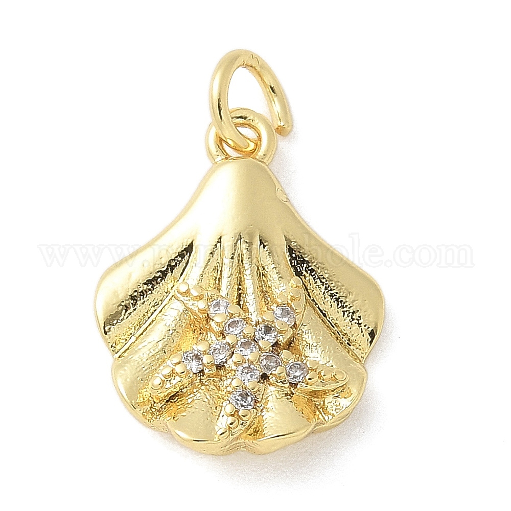 • Настоящее золото 18K Латунные микро проложить кубического циркония подвески, в форме раковины с морской звездой, стойки покрытие, долговечный, без свинца и без кадмия, с целью перехода в кольце, реальный 18 k позолоченный, 15x12x3 мм, отверстие : 2.5 мм