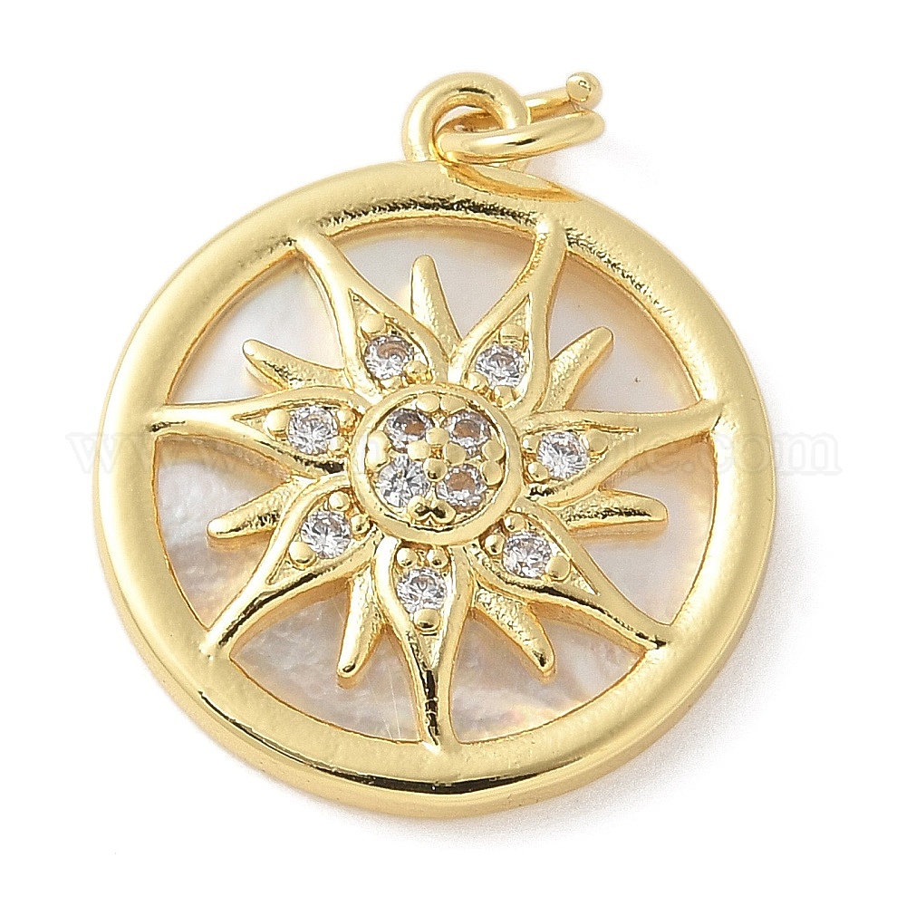 Латунные микро проложить кубического циркония подвески, плоские круглые с солнцем, с оболочкой, без свинца и без кадмия, долговечный, с целью перехода в кольце