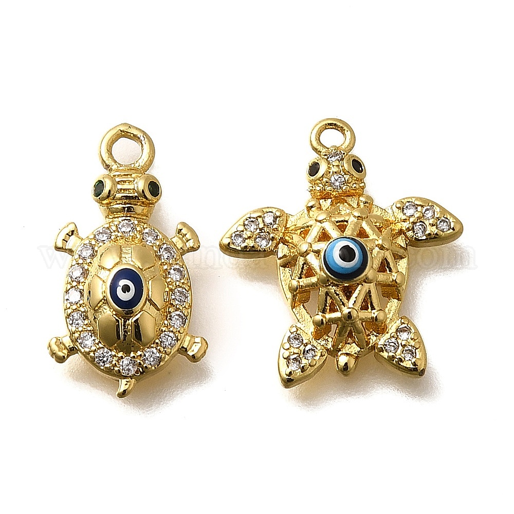 • Настоящее золото 18K Латунные микро проложить кубического циркония подвески, с эмалью, без кадмия, без никеля и без свинца, черепаховые чары, реальный 18 k позолоченный, 16.5x14.5x5 мм, отверстие : 1 мм