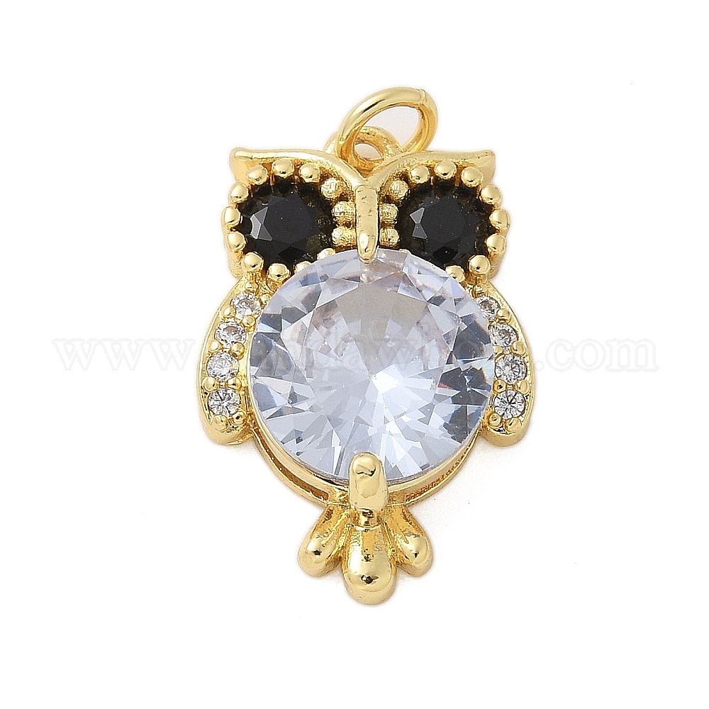 • Сова Стеклянные подвески, с реечной обшивкой из латуни микропаве с фурнитурой из фианита, без кадмия и без свинца, долговечный, реальный 18 k позолоченный, с целью перехода в кольце, сова, 23.5x14x6 мм