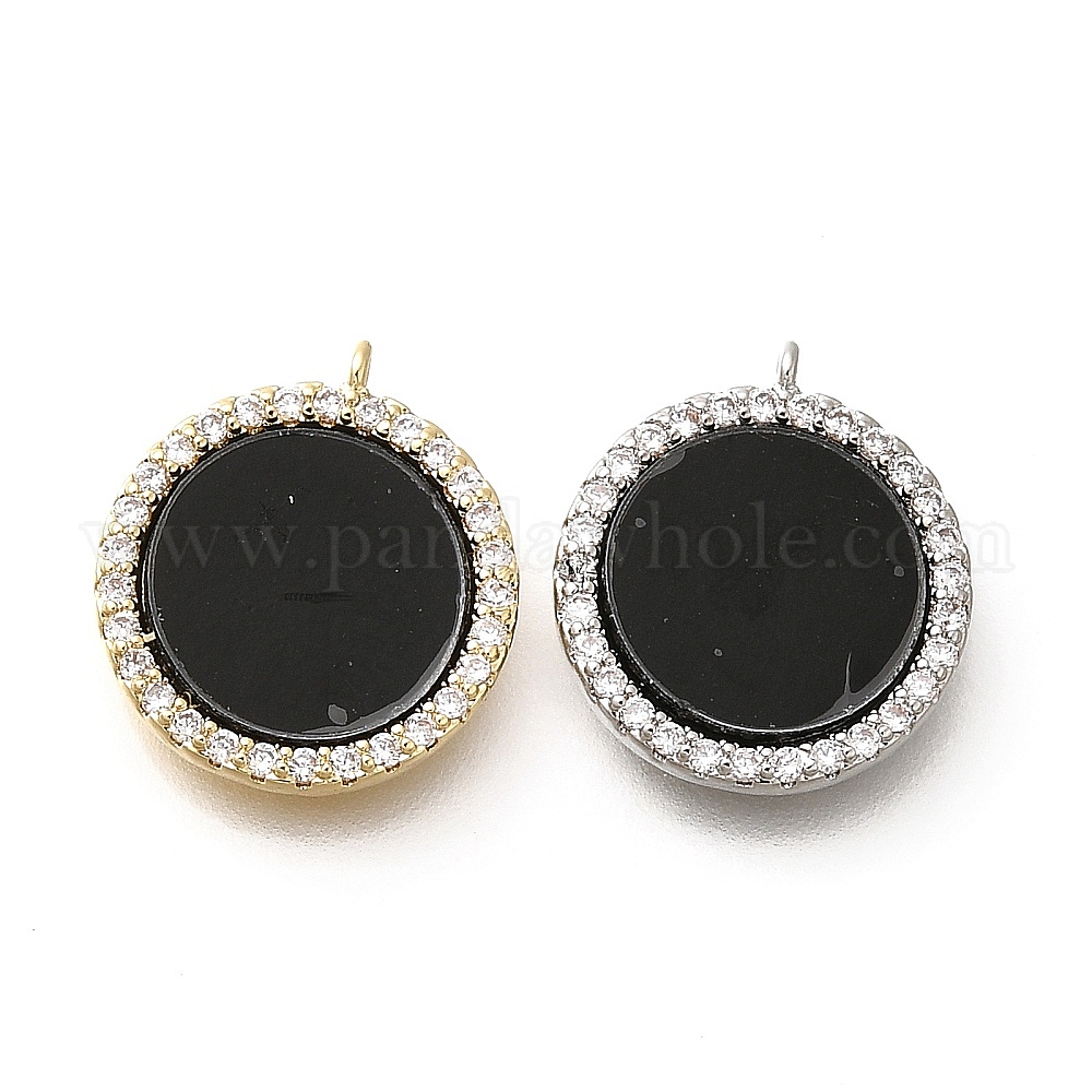 Подвески из латуни с микропаве из кубических цирконий и акрила, без кадмия, без никеля и без свинца, плоско-круглые