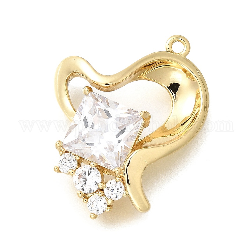 • Настоящее золото 18K Латунные микро проложить кубического циркония подвески, без кадмия, без никеля и без свинца, сердце прелести, реальный 18 k позолоченный, 23.5x21.5x6.5 мм, отверстие : 1.4 мм