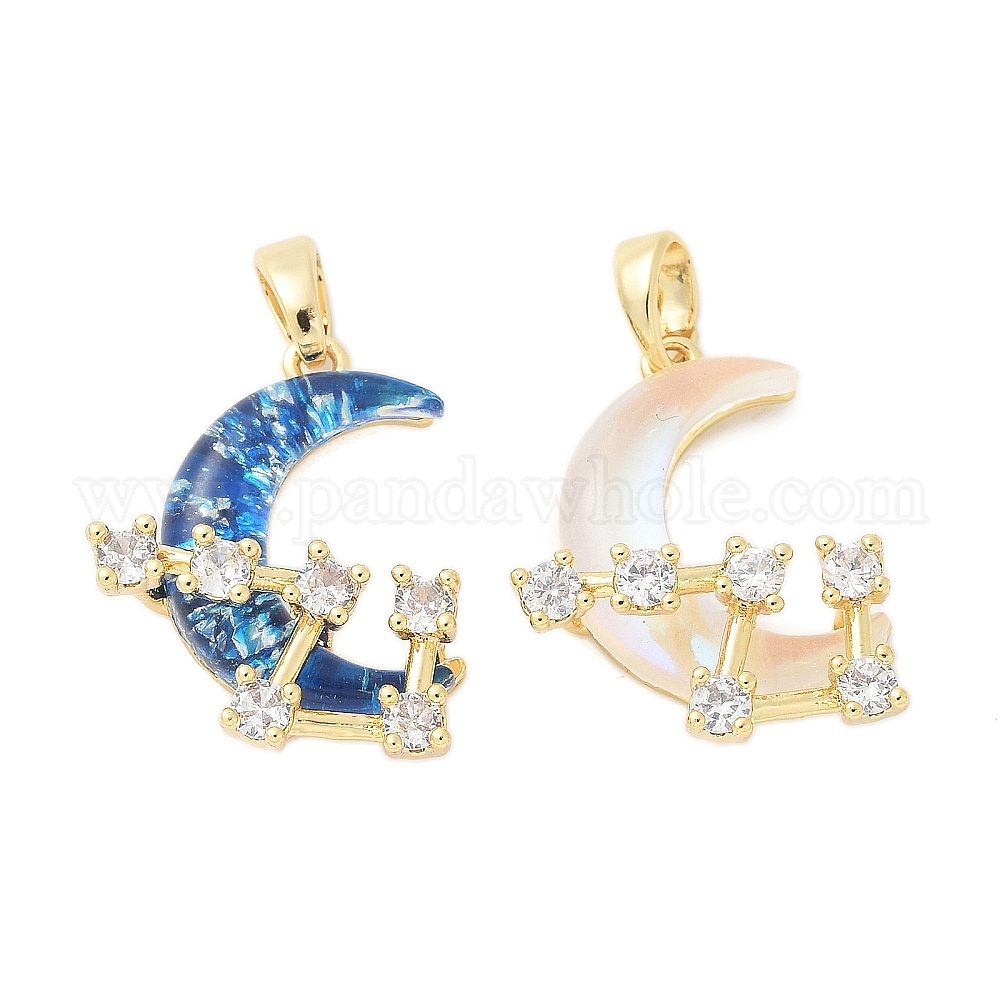 Латунные микро проложить кубического циркония подвески, без кадмия и без свинца, cmолой, подвески луна и звезды