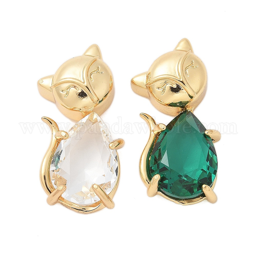Латунные микропаве прозрачные подвески с фианитом, без кадмия и без свинца, лиса, с прыгающим кольцом и стеклом, долговечный