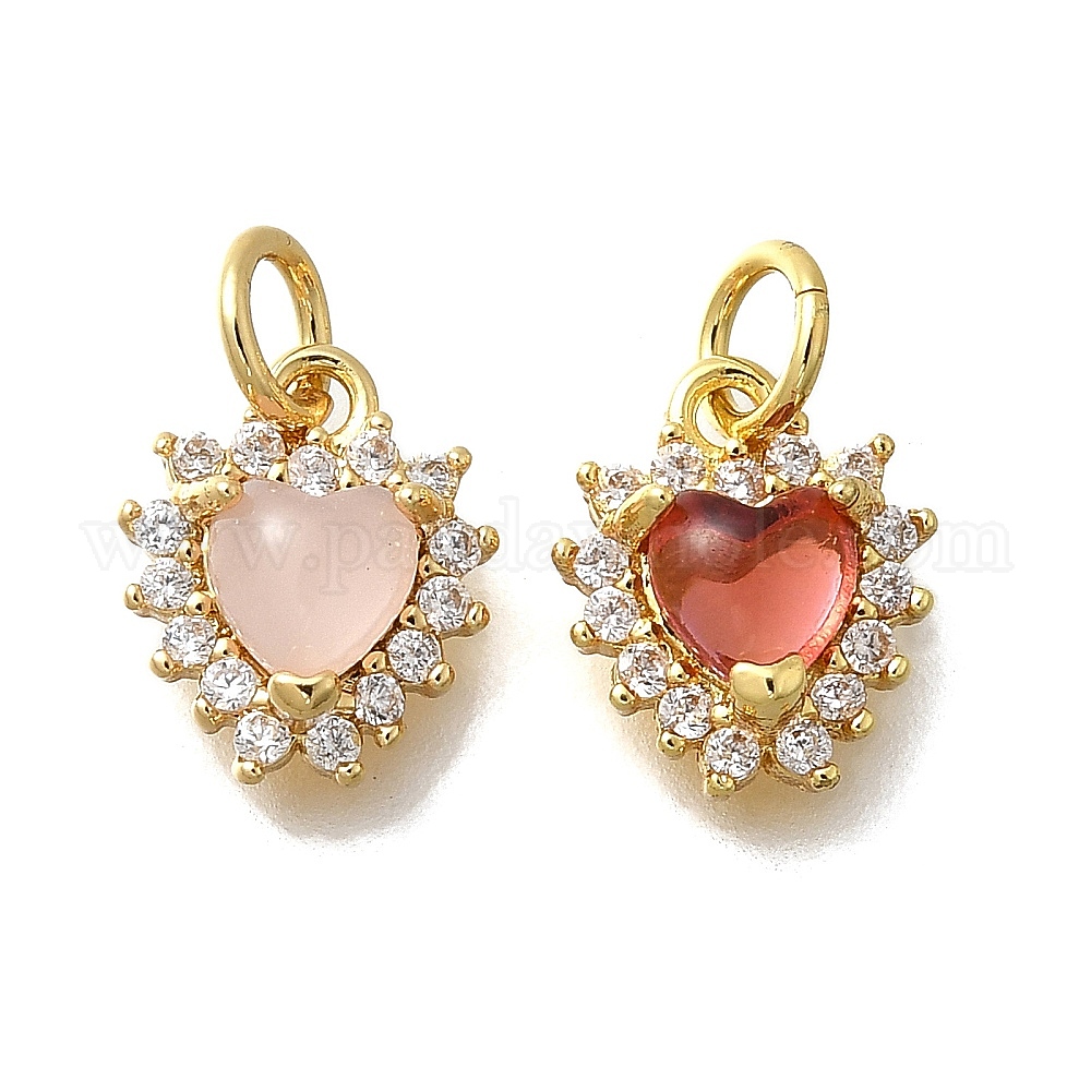 Латунный микропаве кубический цирконий со стеклянными подвесками, сердце прелести, без свинца и без кадмия, реальный 18 k позолоченный, стойки покрытие, с целью перехода в кольце