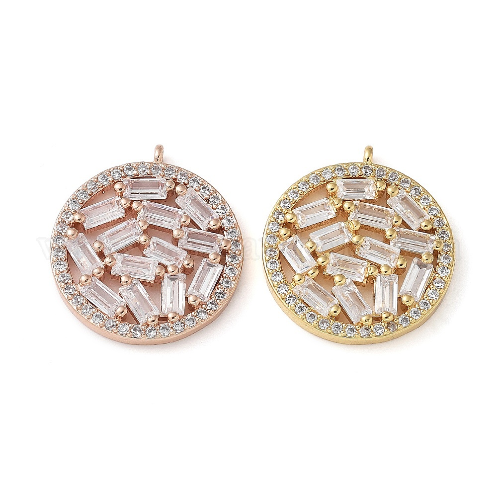 • Розовое Золото Латунные микро проложить кубического циркония подвески, плоские круглые прелести, без кадмия и без свинца, долговечный, стойки покрытие, розовое золото , 19.5x17.5x3 мм, отверстие : 1.2 мм