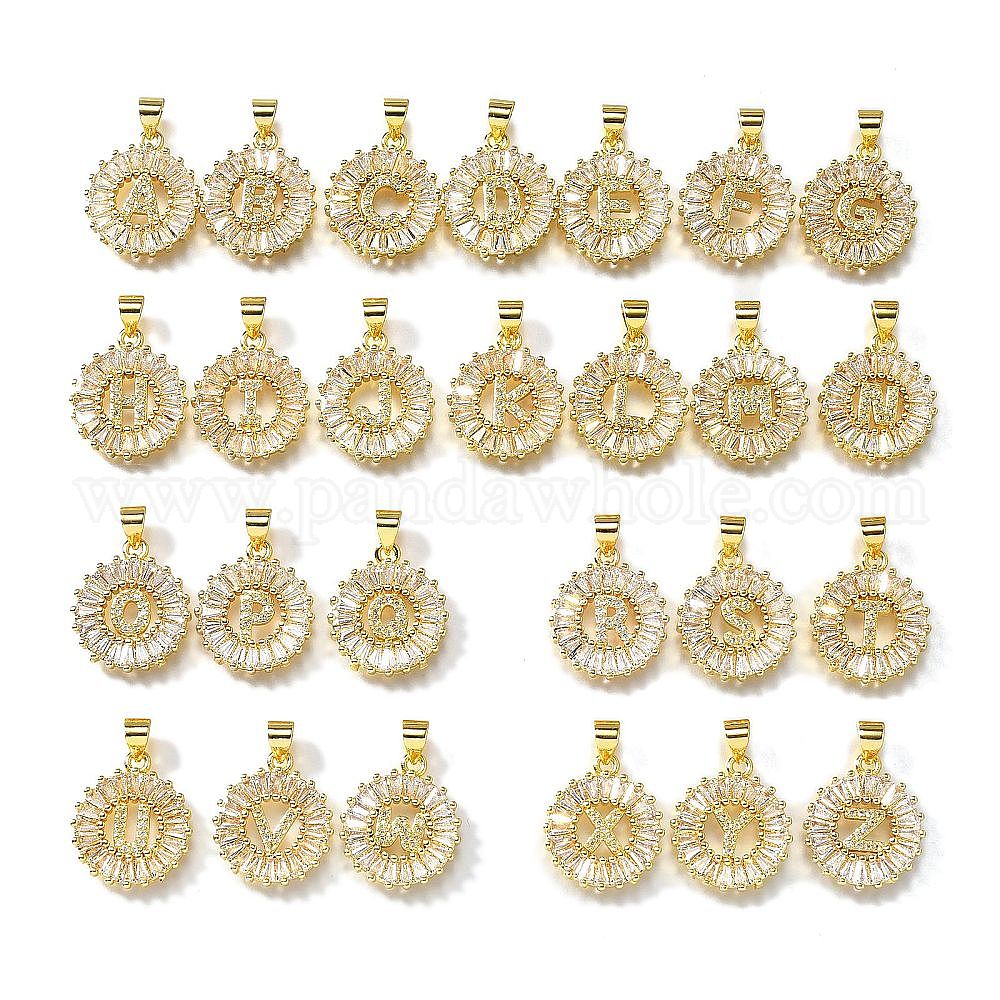 26 кулоны из латуни с микрочастицами и кубическим цирконием., без кадмия, без никеля и без свинца, плоские круглые с буквами a~z подвески