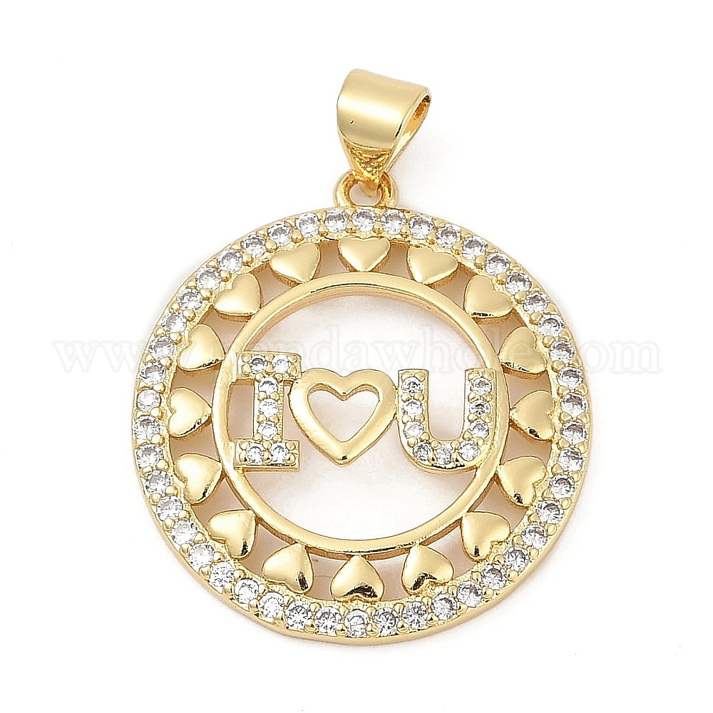 Латунные микро проложить кубического циркония прелести, плоский круглый со словом я тебя люблю, стойки покрытие, без кадмия и без свинца, долговечный