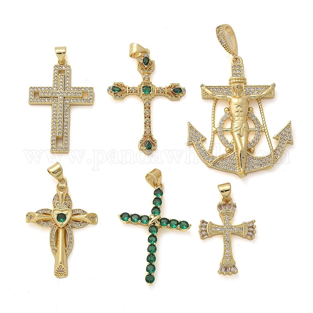 Латунные микро проложить кубического циркония подвески, крест прелести, стойки покрытие, без кадмия и без свинца, прочное покрытие, реальный 18 k позолоченный (031FQ8)