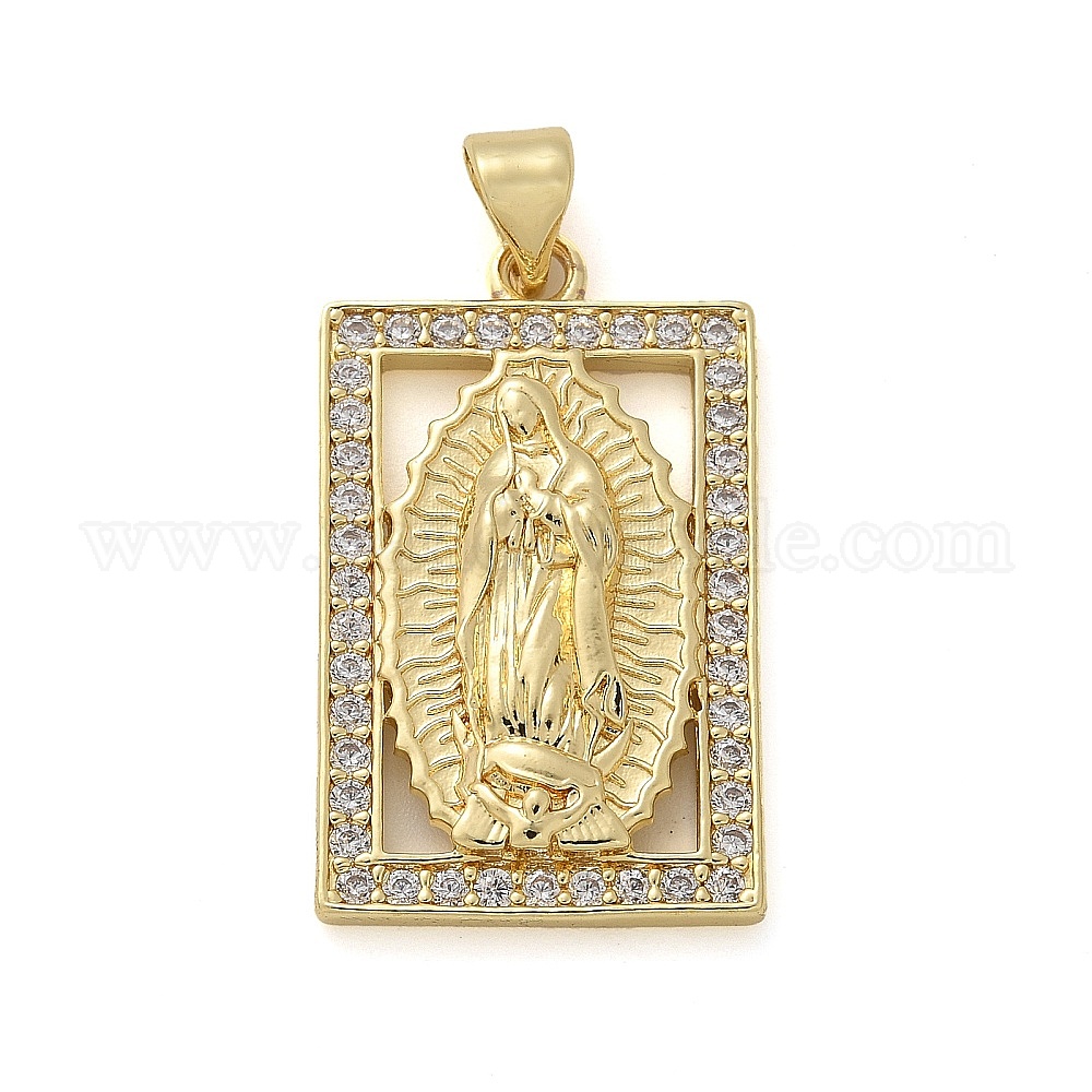Латунные микро проложить кубического циркония подвески, прямоугольник с Девой Марией, долговечный, без свинца и без кадмия