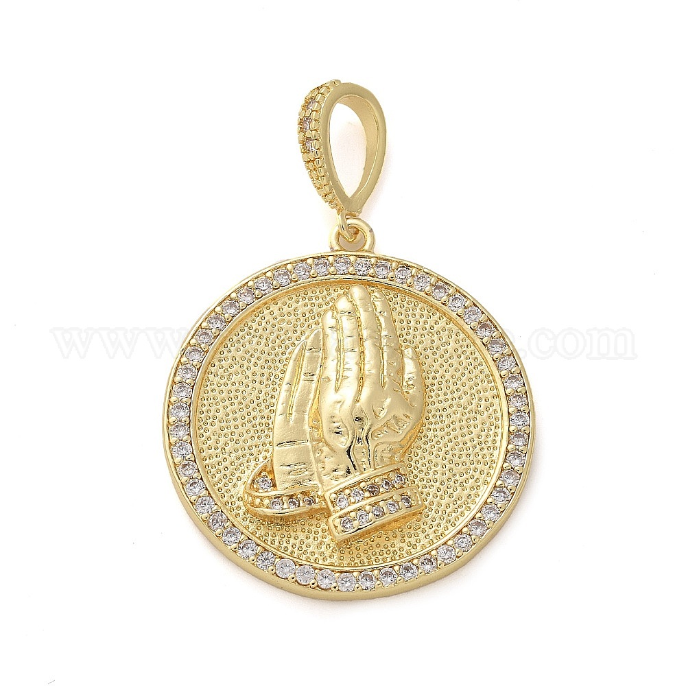 Латунные микропаве прозрачные подвески с фианитом, плоский круглый с накидкой, стойки покрытие, долговечный, без свинца и без кадмия