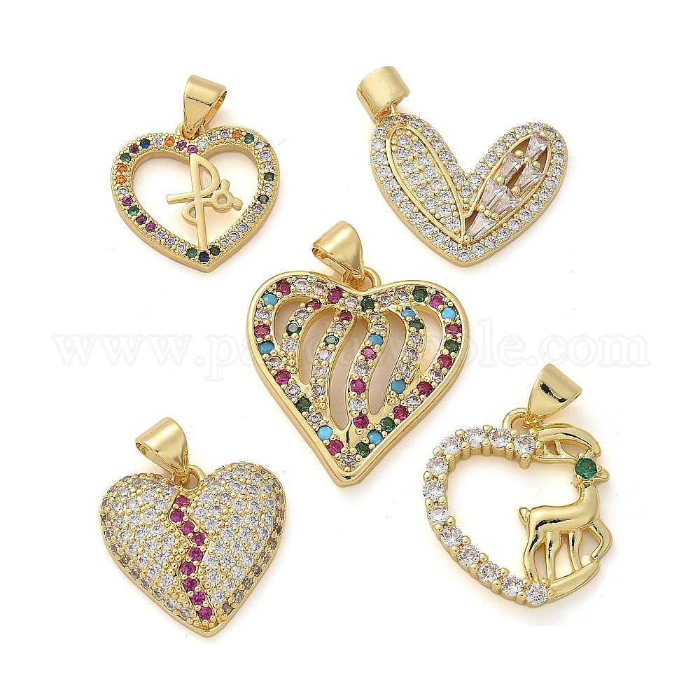 Латунные микро проложить кубического циркония подвески, сердце, стойки покрытие, долговечный, без свинца и без кадмия