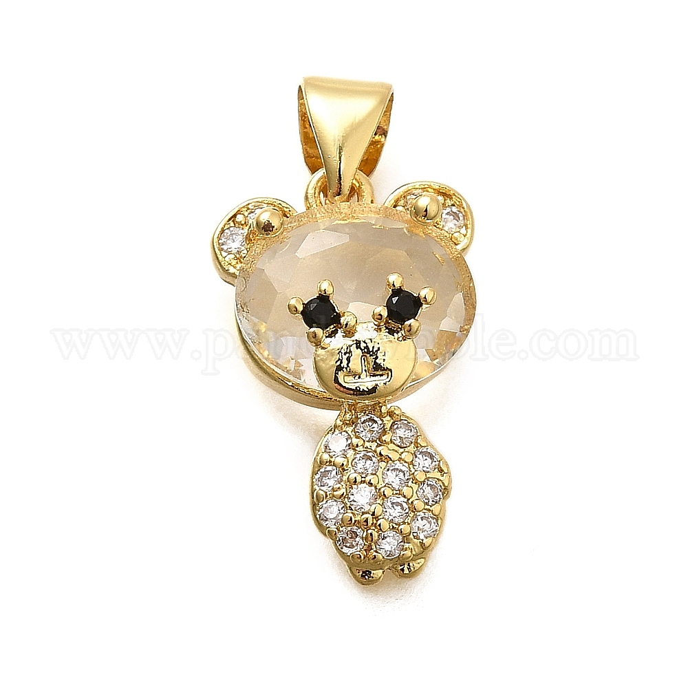 Латунные микро проложить кубического циркония подвески, медведь, со стеклом, долговечный, без кадмия и без свинца, стойки покрытие