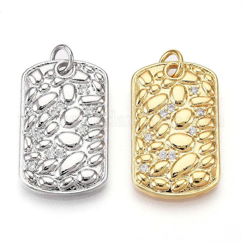 Латунные микро проложить кубического циркония подвески, без кадмия и без свинца, прямоугольник амулеты, с целью перехода в кольце
