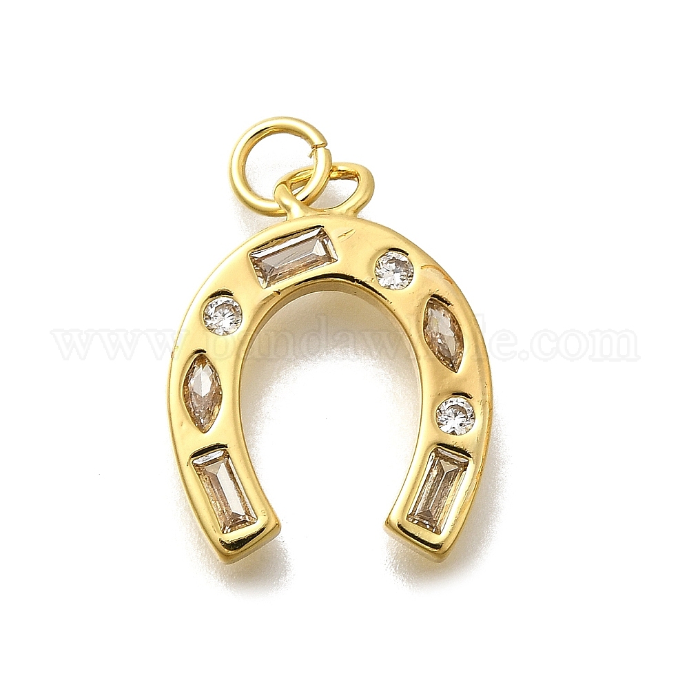 • Letter U Латунные микро проложить кубического циркония подвески, с подвесками-кольцами, без свинца и без кадмия, настоящее золото 18k посажено, Буква U, 21x15.5x2.5 мм, отверстие : 3.3 мм