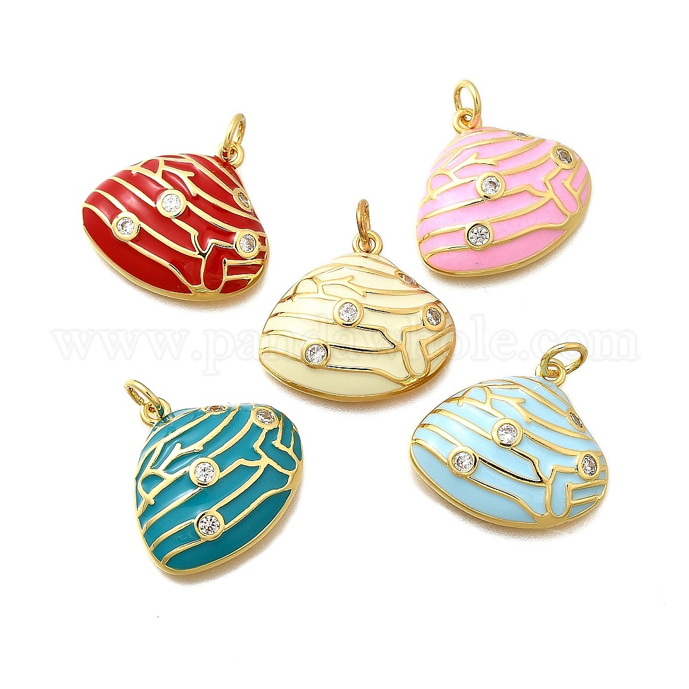 Латунные микро проложить кубического циркония подвески, с эмалью, подвески в форме ракушек, с целью перехода в кольце, без свинца и без кадмия, реальный 18 k позолоченный (031JY9)