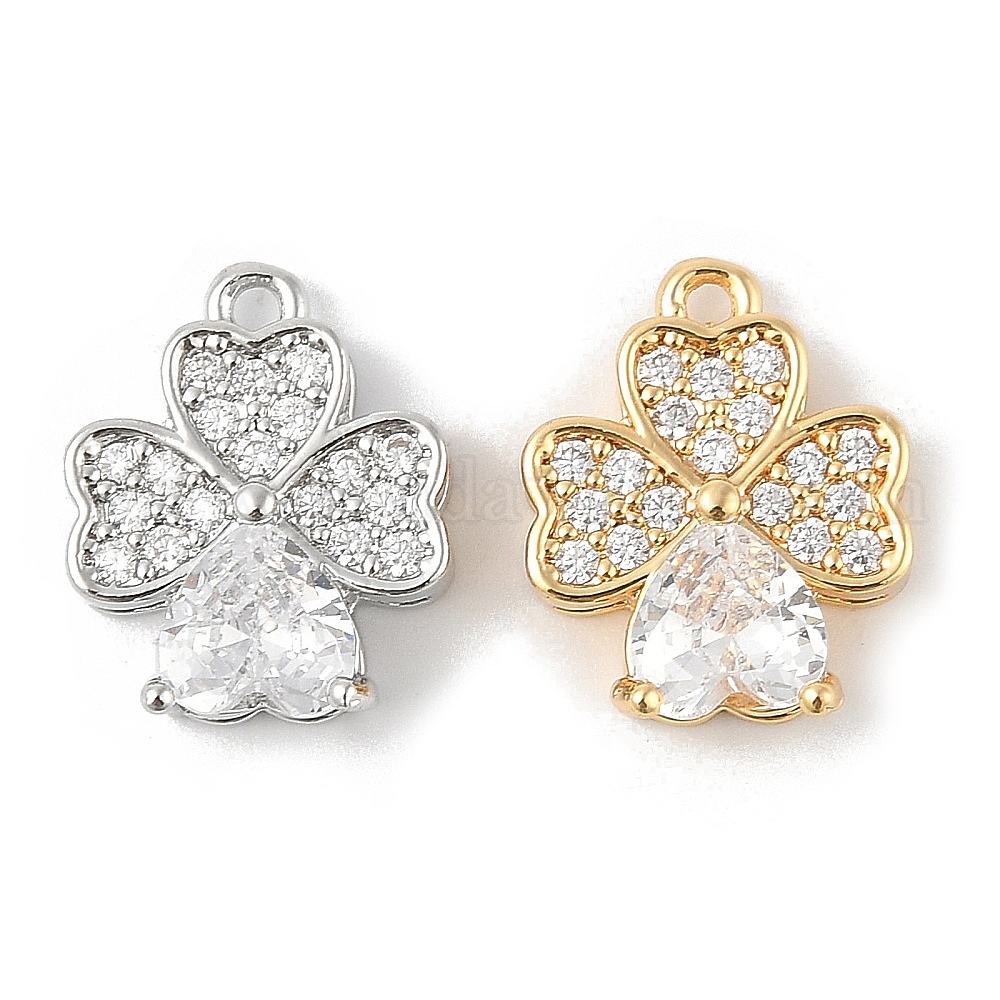 Латунные микропаве прозрачные кубические циркониевые подвески, без кадмия, без никеля и без свинца, клевер