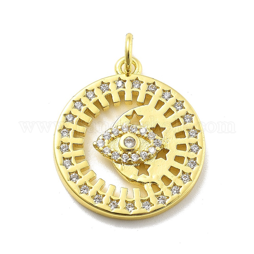 • Настоящее золото 18K Стойка металлическая латунная микропрофилированная кубическая циркония подвески, медальон-талисман от сглаза, с целью перехода в кольце, без свинца и без кадмия, долговечный, реальный 18 k позолоченный, 20.5x18.5x2.5 мм, отверстие : 3 мм