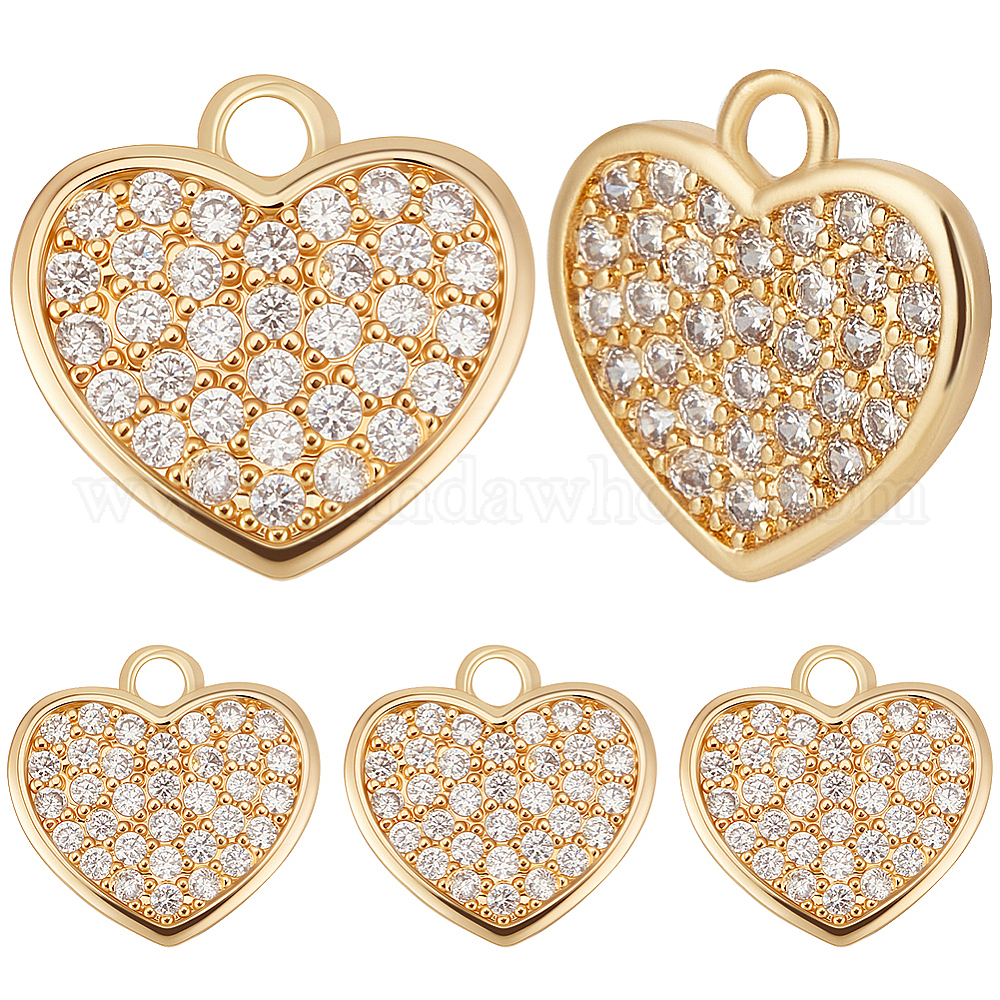 8подвески из латуни с микропаве из кубического циркония, сердце, без кадмия и без свинца, долговечный, стойки покрытие