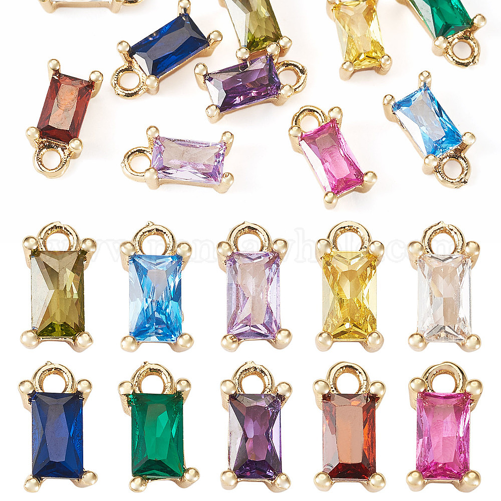 10 шт. 10 цвета латунные подвески с цирконием, прямоугольные, без никеля , реальный 18 k позолоченный