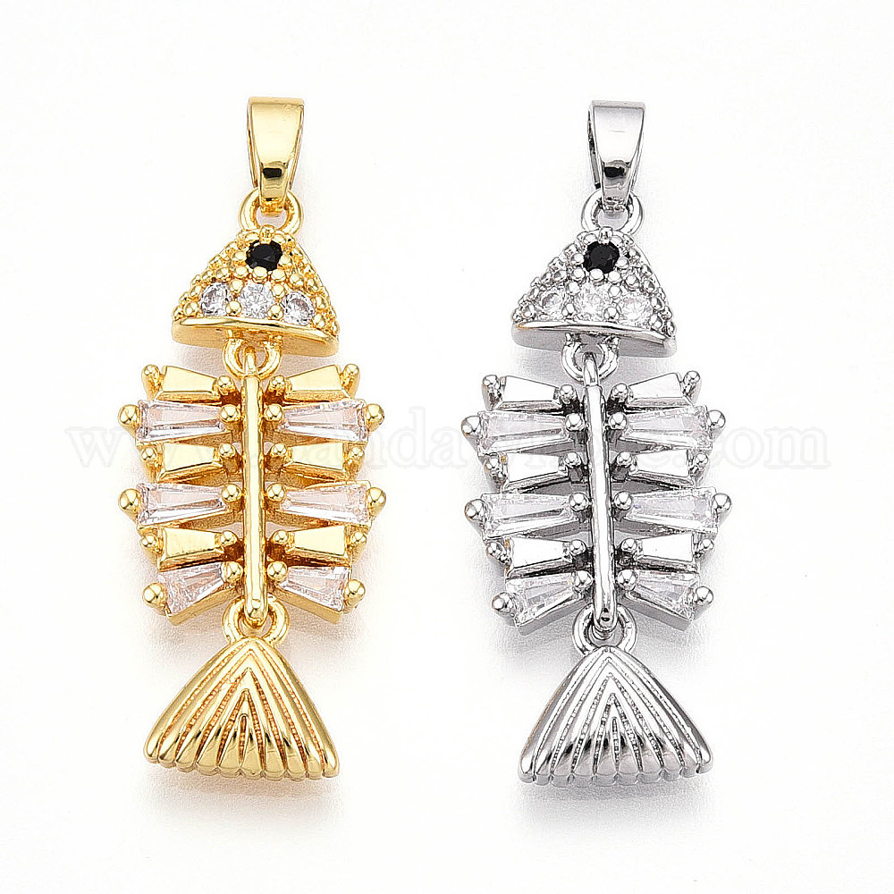 Латунные микро проложить кубического циркония подвески, без кадмия и без свинца, рыбы прелести