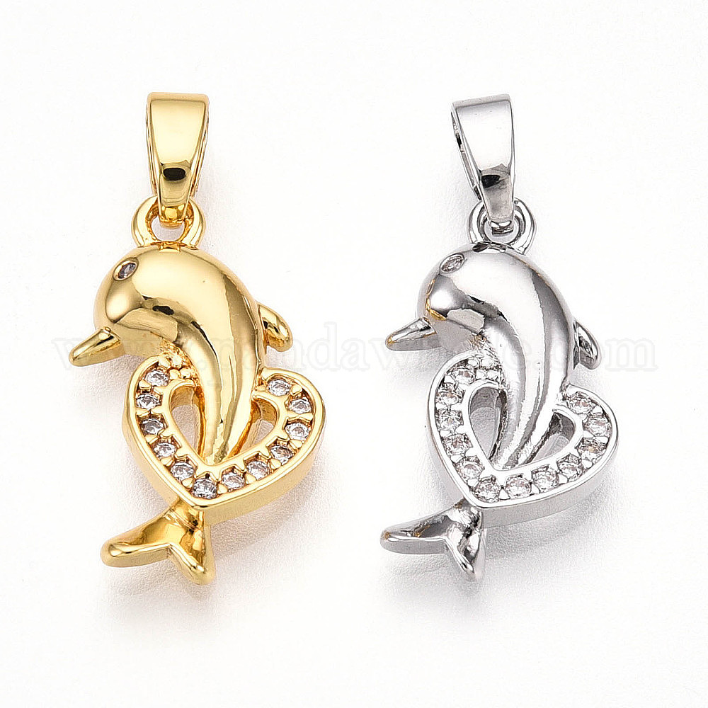 Латунные микро проложить кубического циркония подвески, без кадмия и без свинца, дельфин с сердечками