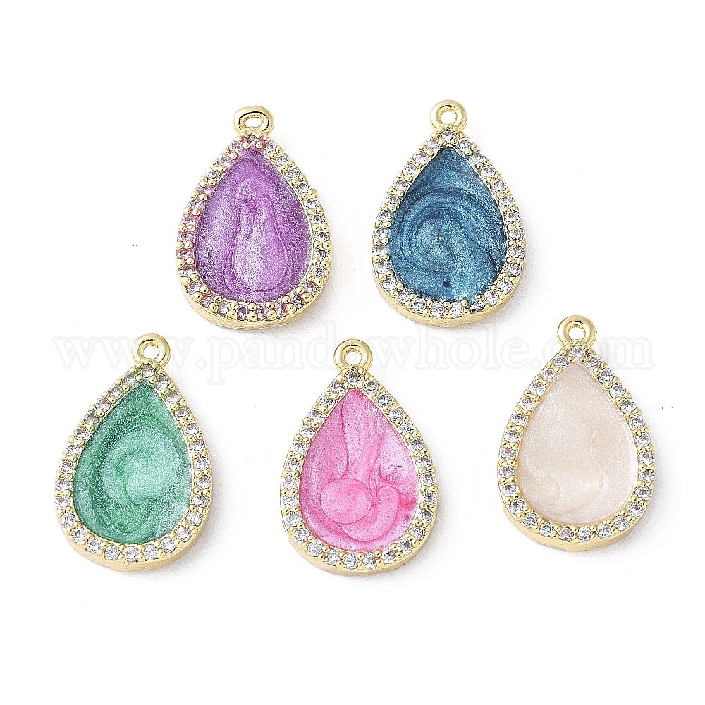 Латунные микро проложить кубического циркония подвески, с эмалью, слезинки, стойки покрытие, долговечный, без свинца и без кадмия, реальный 18 k позолоченный