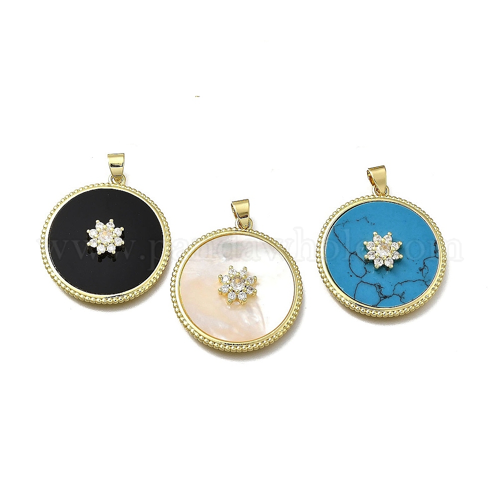 Латунные микро проложить кубического циркония подвески, С оболочкой и смолой, плоско-круглые, без кадмия и без свинца, стойки покрытие, долговечный, реальный 18 k позолоченный