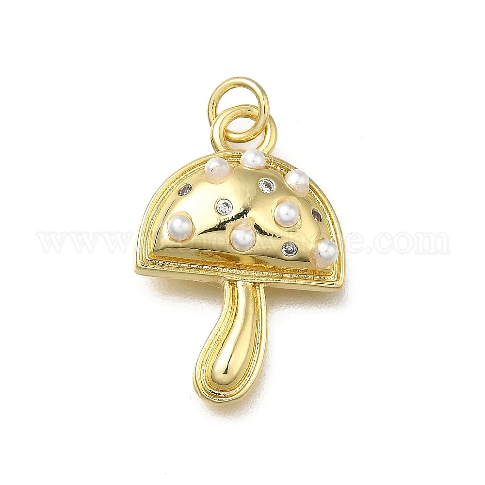 Латунные микро проложить кубического циркония подвески, с ABS имитации жемчуга, грибные прелести, без кадмия и без свинца, стойки покрытие, долговечный, с целью перехода в кольце