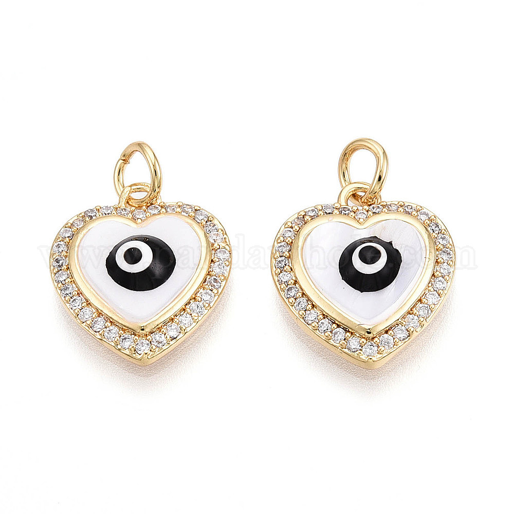 • Настоящее золото 18K Латунные микро проложить кубического циркония прелести, с эмалью и ракушкой, сердце с сглаза, с целью перехода в кольце, без кадмия и без свинца, реальный 18 k позолоченный, 15x13x4~4.5 мм, отверстие : 3.5 мм