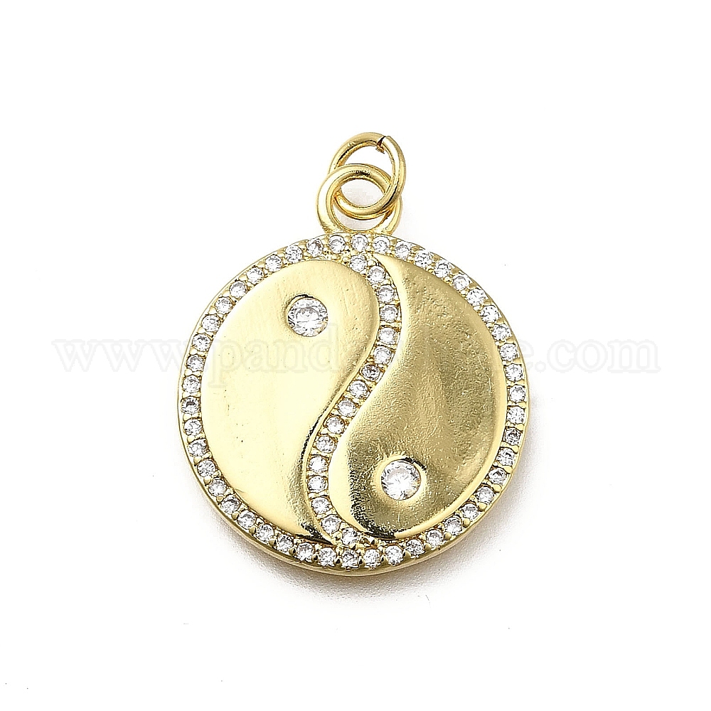 Латунные микро проложить кубического циркония подвески, медальон инь-ян, без кадмия и без свинца, стойки покрытие, долговечный, с целью перехода в кольце
