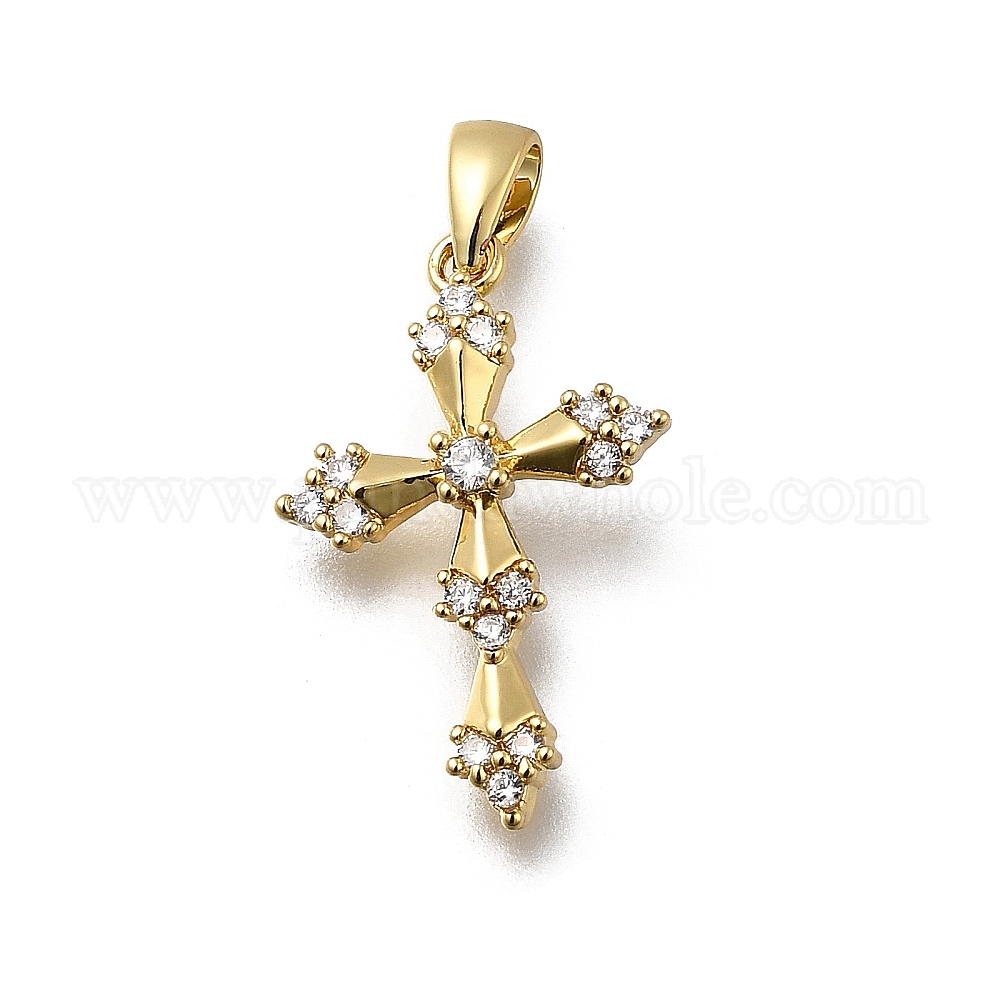 • Настоящее золото 18K Латунные микропаве прозрачные подвески с фианитом, крест прелести, без кадмия и без свинца, долговечный, стойки покрытие, реальный 18 k позолоченный, 20.5x13.5x2.5 мм, отверстие : 4x2 мм