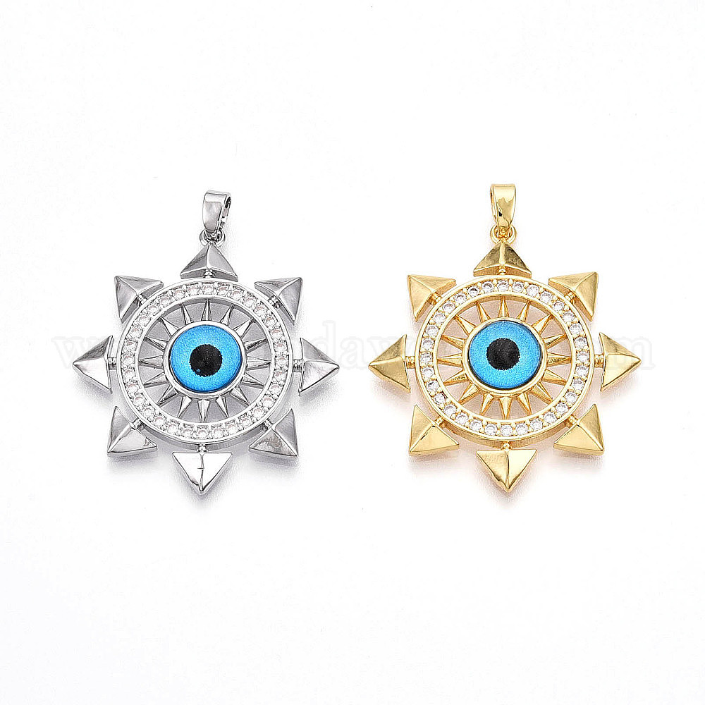 Латунные микро проложить кубического циркония подвески, без кадмия и без свинца, со стеклом, солнце и дурной глаз