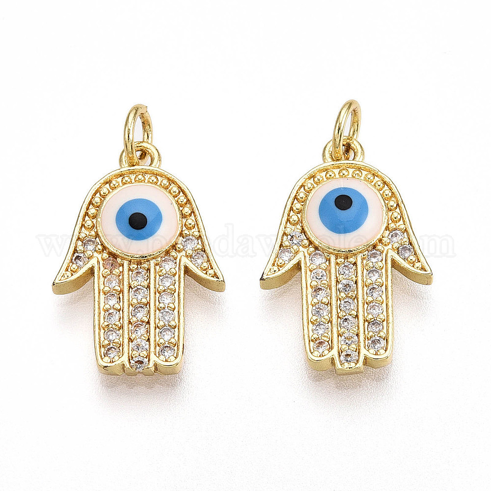 Латунные микро проложить кубического циркония подвески, без кадмия и без свинца, с эмалью, реальный 18 k позолоченный, с целью перехода в кольце, Хамса руку с дурным глазом