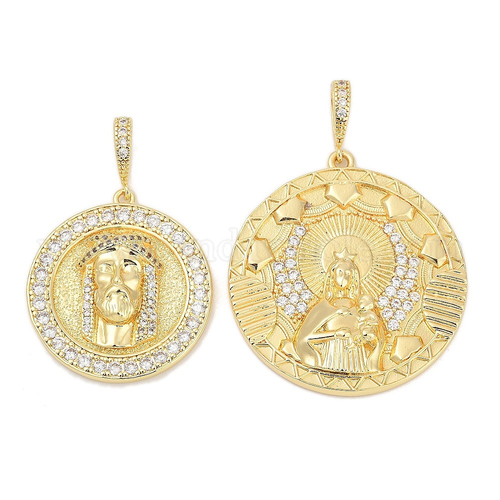 Латунные микро проложить кубического циркония подвески, плоско-круглые, без свинца и без кадмия, долговечный, стойки покрытие