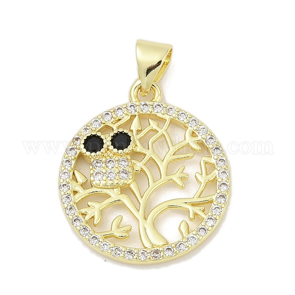 Латунные микро проложить кубического циркония подвески, плоские круглые с деревом, без свинца и без кадмия, долговечный, стойки покрытие