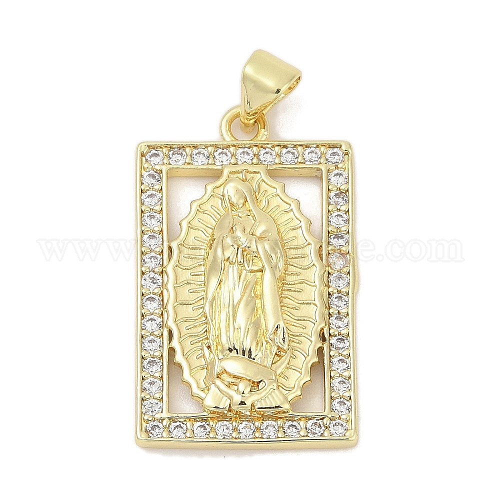 Латунные микро проложить кубического циркония подвески, прямоугольник с Девой Марией, без свинца и без кадмия, долговечный, стойки покрытие