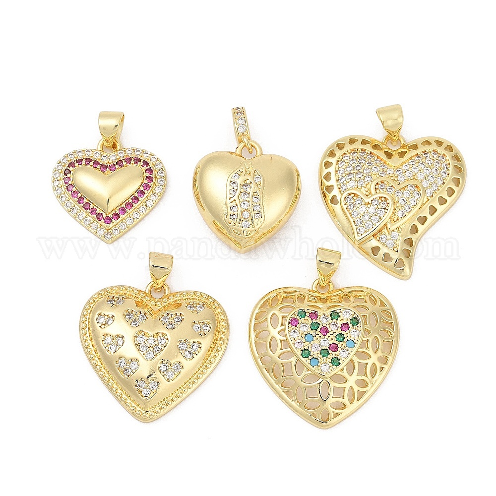 Латунные микро проложить кубического циркония подвески, сердце, без свинца и без кадмия, долговечный, стойки покрытие