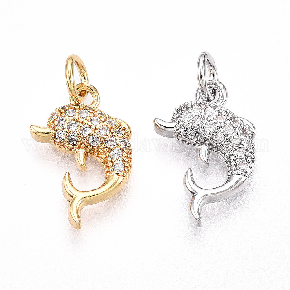 Латунные микро проложить кубического циркония подвески, без кадмия и без свинца, с прыжковых колец, дельфин