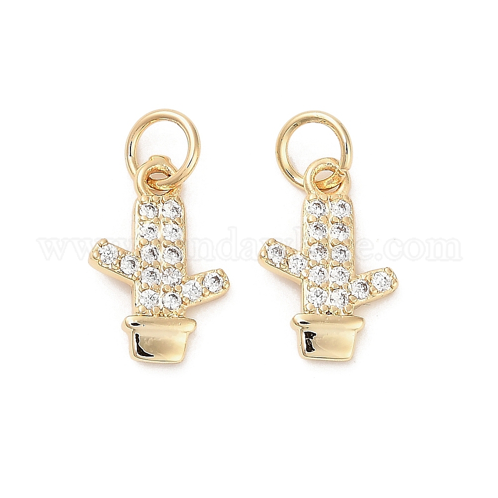 • Настоящее золото 14K Латунные микро проложить кубического циркония подвески, кактус прелести, с целью перехода в кольце, реальный 14 k позолоченный, 13x9x2 мм, отверстие : 3.5 мм