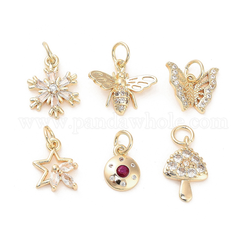 • Снежинка Латунные микро проложить кубического циркония подвески, реальный 14 k позолоченный, снежинка, 18x11x3 мм, отверстие : 3.5 мм