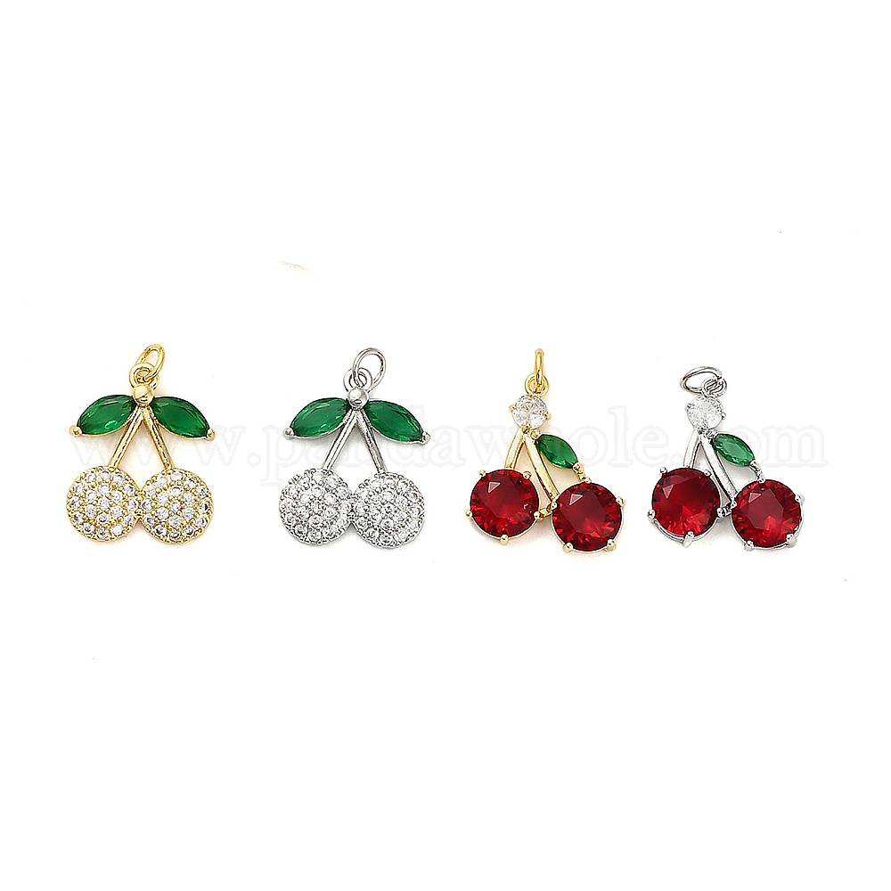 Латунные микро проложить кубического циркония подвески, черри прелести, с целью перехода в кольце, стойки покрытие, долговечный, без свинца и без кадмия (03251D)
