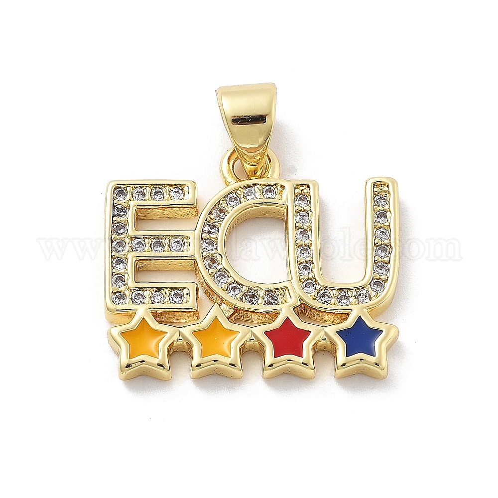 Латунные микро проложить кубического циркония подвески, слово ecu со звездой, с эмалью, без кадмия и без свинца, стойки покрытие, долговечный