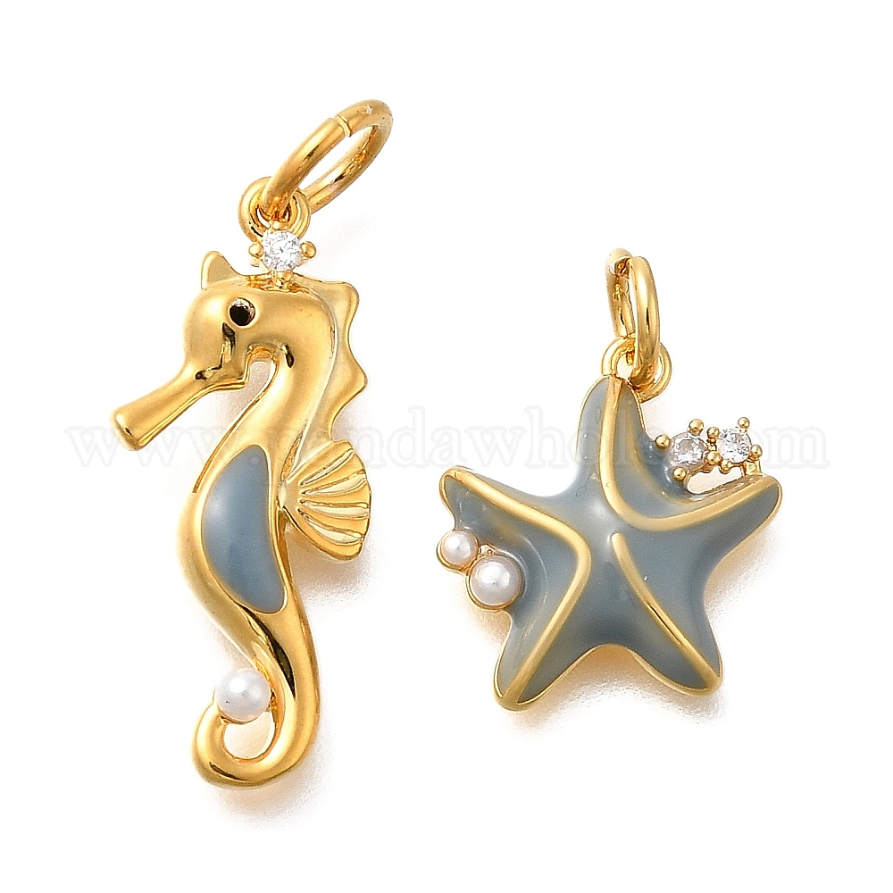 • Морская звезда Латунные микро проложить кубического циркония подвески, с эмалью и пластиковой жемчужиной, с целью перехода в кольце, морская звезда, 13x12x3 мм, отверстие : 3 мм