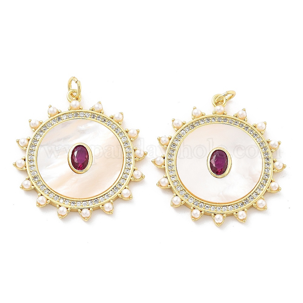 Латунные микро проложить кубического циркония подвески, солнце, с ракушкой и искусственным жемчугом, без кадмия и без свинца, стойки покрытие, долговечный, с целью перехода в кольце