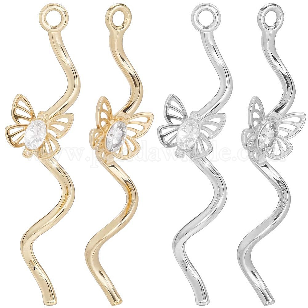 12 шт 2 цвета кулоны из латуни, микропаве, циркония, бабочка
