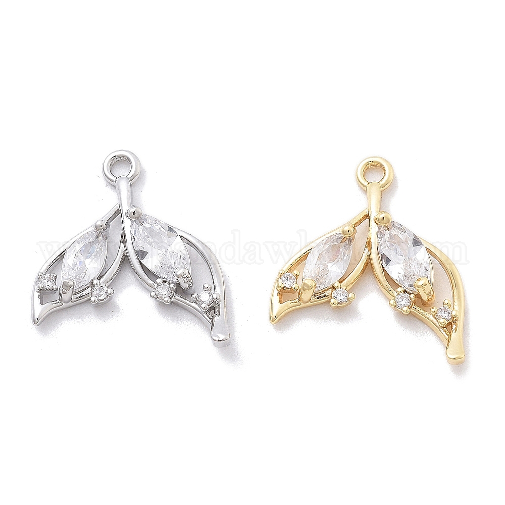 • Настоящее золото 18K Латунные микро проложить кубического циркония подвески, без кадмия, без никеля и без свинца, прелести рыбий хвост, реальный 18 k позолоченный, 18.5x15x3.5 мм, отверстие : 1.5 мм