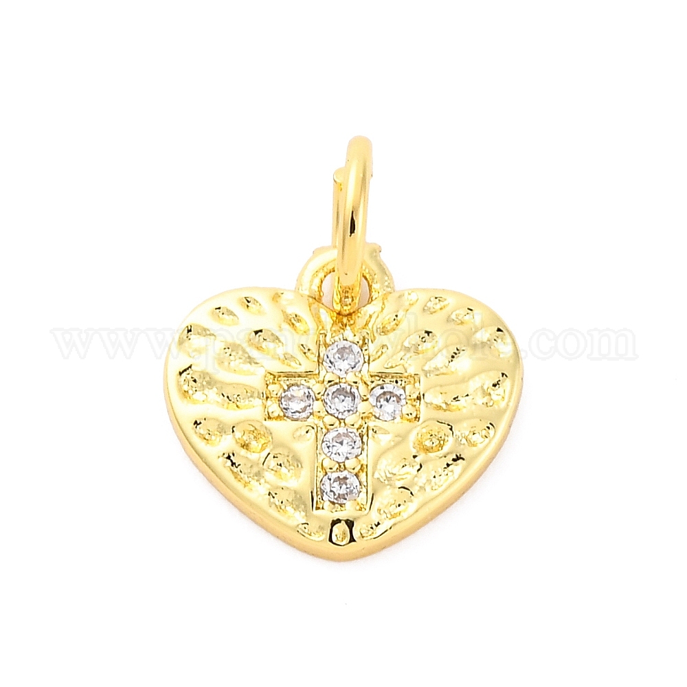 Латунные микро проложить кубического циркония подвески, без кадмия и без свинца, сердце с крестными прелестями, с целью перехода в кольце