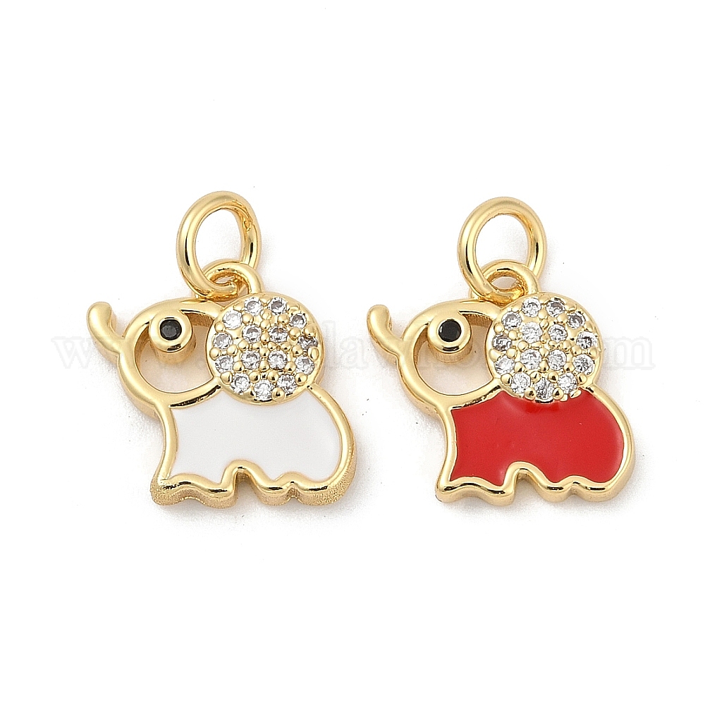 Латунные подвески с кубическими цирконами и эмалью, Слон прелести, долговечный, без свинца и без кадмия, стойки покрытие, реальный 18 k позолоченный, с целью перехода в кольце