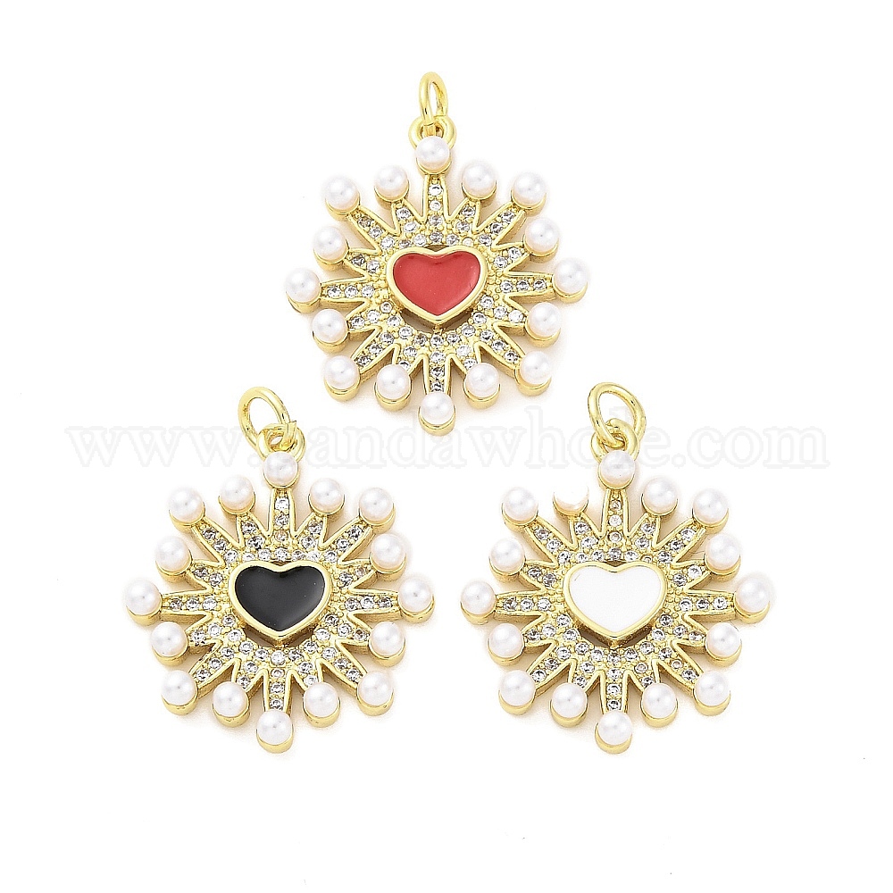 Латунные подвески с имитацией жемчуга из микрофибры и эмали из АБС-пластика, сердце прелести, с целью перехода в кольце, без кадмия и без свинца, реальный 16 k позолоченный